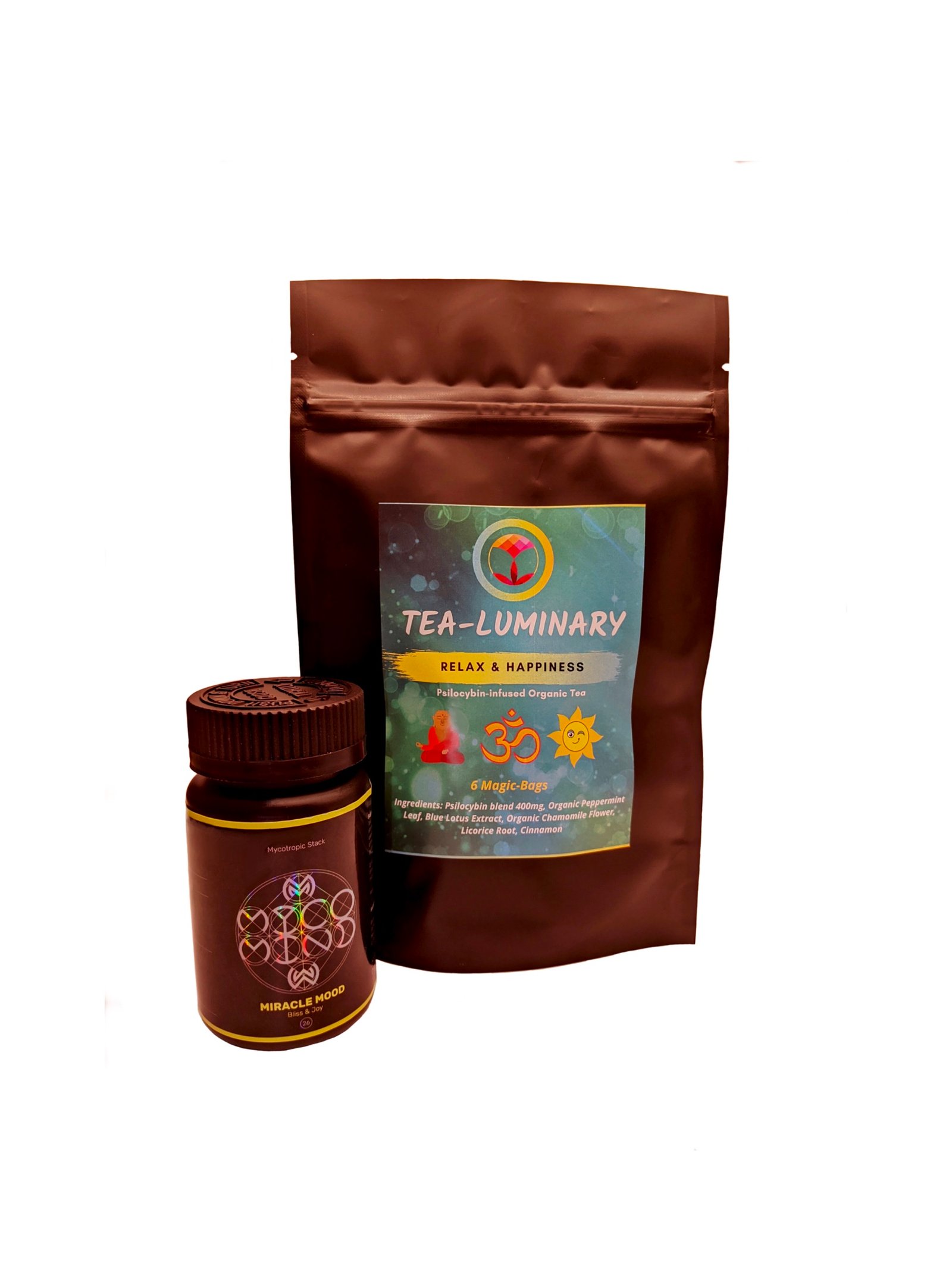 Features microdosing stack Miracle Mood by Myco Mind and our psilocybin tea Tea-Luminary.